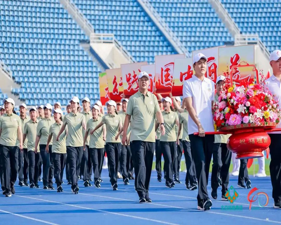 “從連續68年長安街園林景觀養護到連續38年完成天安門廣場國慶花壇,園林集團始終是共和國高标準國事活動服務者和重大政務活動保障者,是美麗中國的踐行者,是首都綠色事業的主力軍!”伴随着播音員的介紹,由基層一線園林設計師、綠化工程師、花卉園藝師、古建修繕師等54名代表組成的園林集團方隊在黨委書記、董事長馬立強和黨委副書記、總經理戚濤的帶領下,邁着整齊劃一的步伐,高喊着“美麗中國、奮鬥有我”的嘹亮口号,英姿飒爽地通過主席台。方陣最前面,由園林集團重大政務花藝服務保障團隊親手插制的天安門廣場國慶大花籃1:15模型隆重亮相,成爲9月15日北京城建集團第七屆職工運動會開閉幕式上一道亮麗的風景線。