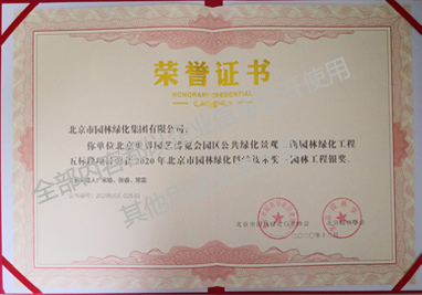 世界園藝博覽會公共綠化景觀二期園林綠化工程五标段榮獲2020年北京市園林綠化科學技術獎-園林工程銀獎